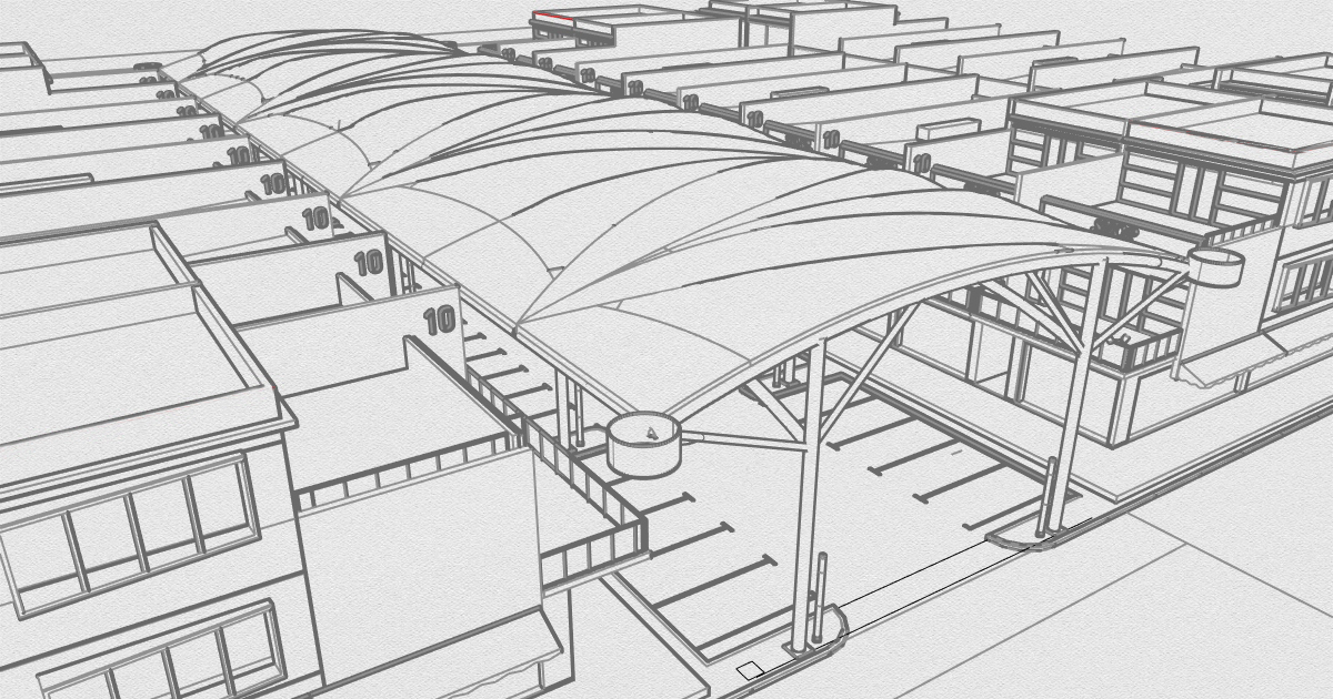It all starts with a design request in the form of either an architectural idea, a roofing enquiry or a tender request for a canopy structure. We then study the as-built layouts or the 3D visualisations to determine and identify the required coverage area/s before we doodle forms and shapes of canopies on our drawing papers. Then, we convert our conceptual sketches into 3D models, and superimpose the 3D content against the as-built drawings in relation to the surroundings, ensuring that the overall design fulfils the architect’s intent. Feasible Concepts are then presented to the client for approval.