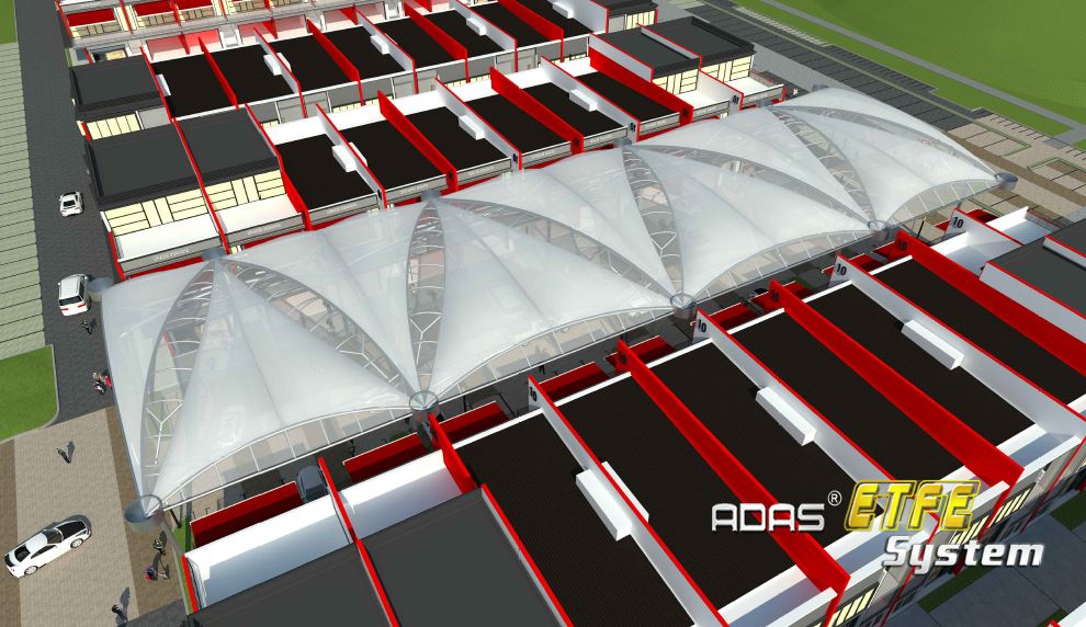 In this two-part series, we will showcase the workflow of our designers from the initial concept stage to the installation process through one of our renowned projects, the M3 Main Boulevard in Sunway Iskandar (Johor Bahru, Malaysia). An ADAS® ETFE Skylight system which combines both single layer ETFE and ETFE cushion systems, the canopy serves and shelters the shophouse tenants and patrons from bad weather conditions.
